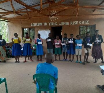 YOWORI staff and board members posing with the Traditional Authority Ntchema and Village head Sabuni. The community leaders were briefed on the project goals and implementation plan. It was also an opportunity for YOWORI to talk to the village heads on girl child rights and to mobilise them to respond effectively towards ending child marriages and encourage girl child education.
